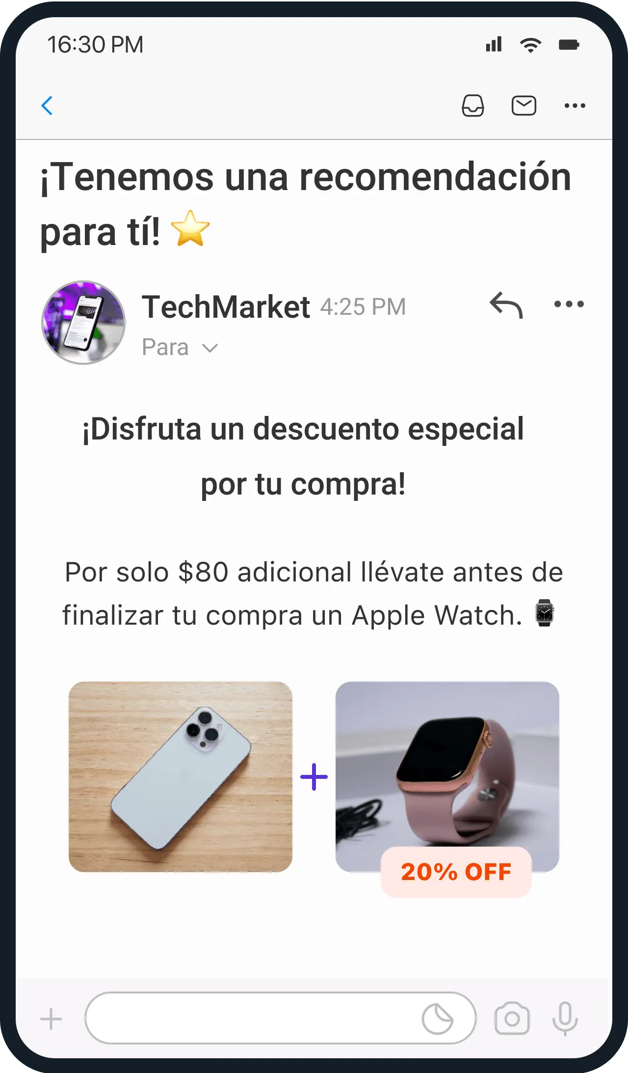 Impulsa tus ventas con estrategias efectivas de cross-selling y up-selling. Utiliza la IA para identificar oportunidades y enviar recomendaciones de productos personalizadas que animen a tus clientes a explorar y adquirir más de tu oferta.