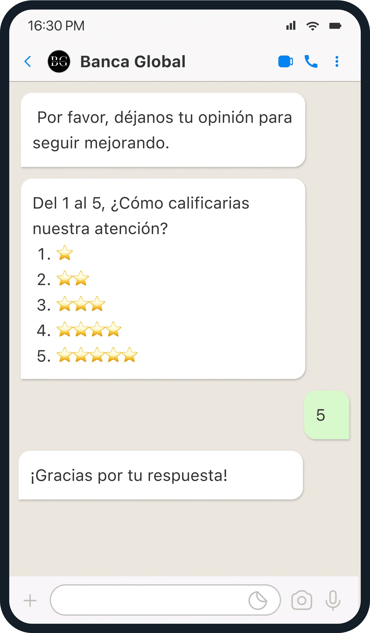 Realiza encuestas de satisfacción post-interacción para recoger feedback valioso de los clientes directamente a través de WhatsApp, permitiendo a la empresa ajustar rápidamente sus servicios o productos.